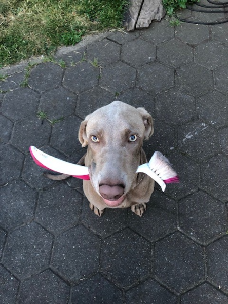 Ob es daran lag, dass sie ihre ersten Wochen in Gesellschaft eines Jagdterriers verbrachte, wissen wir nicht. Wir wissen aber wohl, dass dieser Welpe weder Angst noch Schmerzen kannte. Angriffe der kleinen Kröte auf die anderen Rudelmitglieder erfolgten aus dem Nichts, nur vor Oma Lilli zeigte sie ein wenig mehr Respekt. Die Familie nennt sie bis heute "Heul nicht" oder "Das böse Kind". Mit Vorliebe sitzt sie auf ihren Rudelmitgliedern.