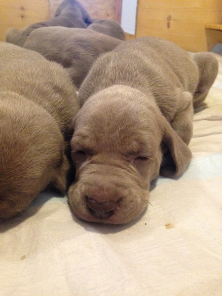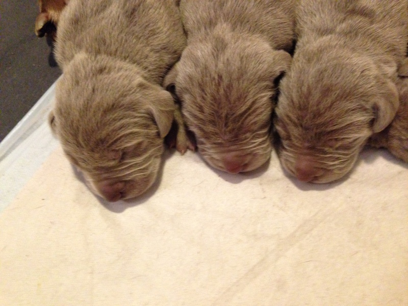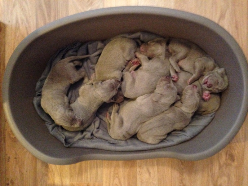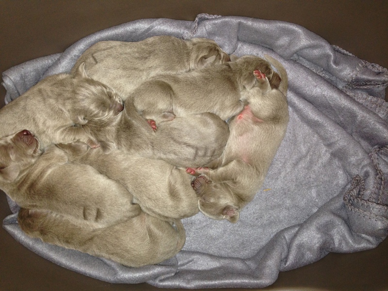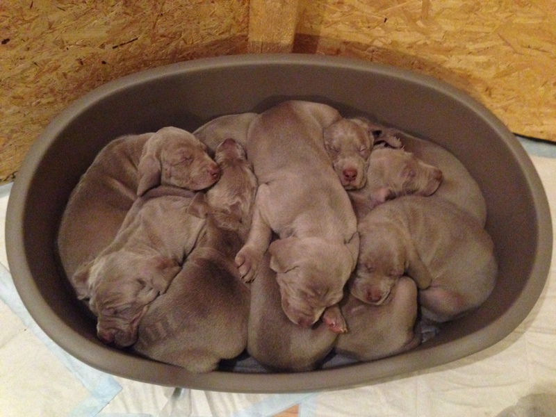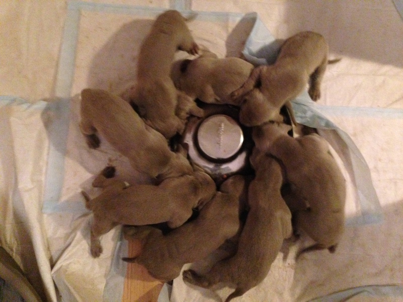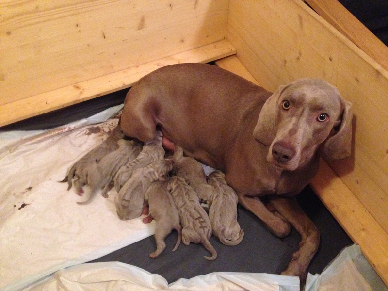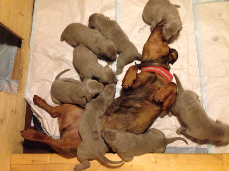 17.12.14 Fettere Welpen hat die Welt noch nicht gesehen. 5 Rüden, 3 Hündinnen. 530 g - 660 g. 3 Tage eher hätte wohl auch gereicht...