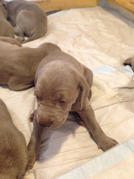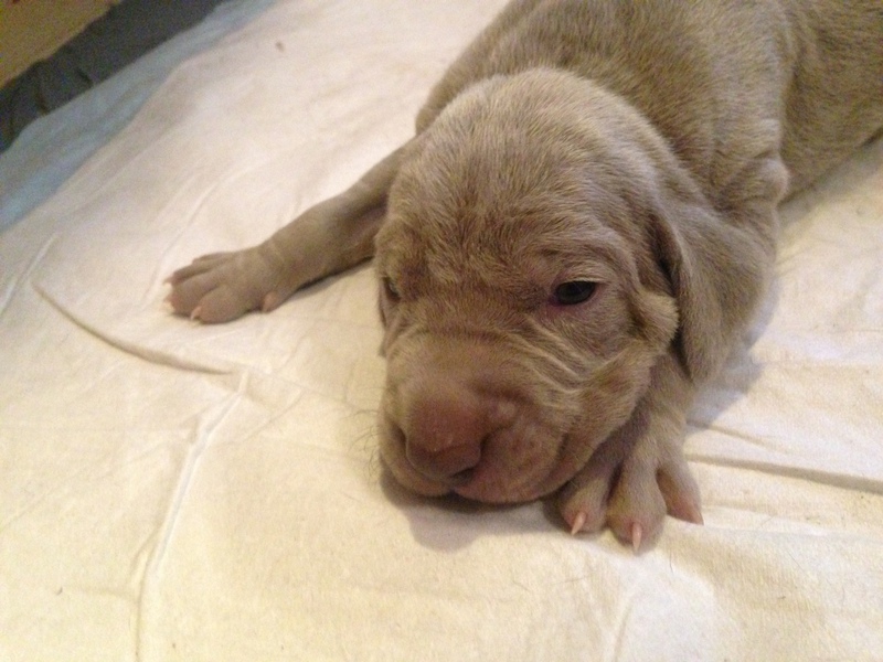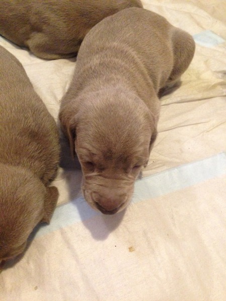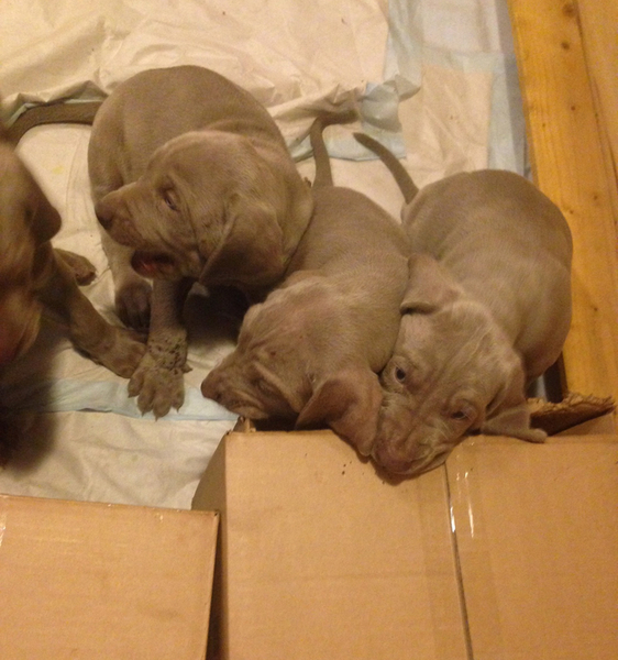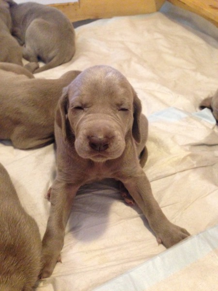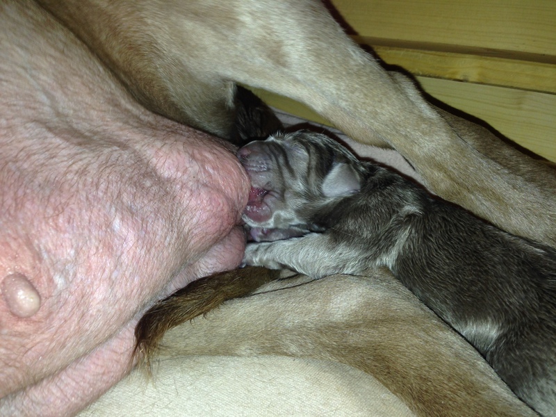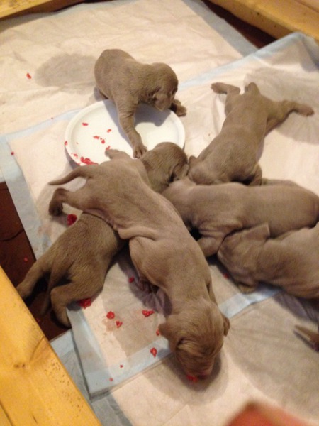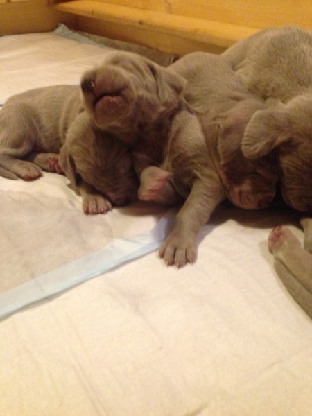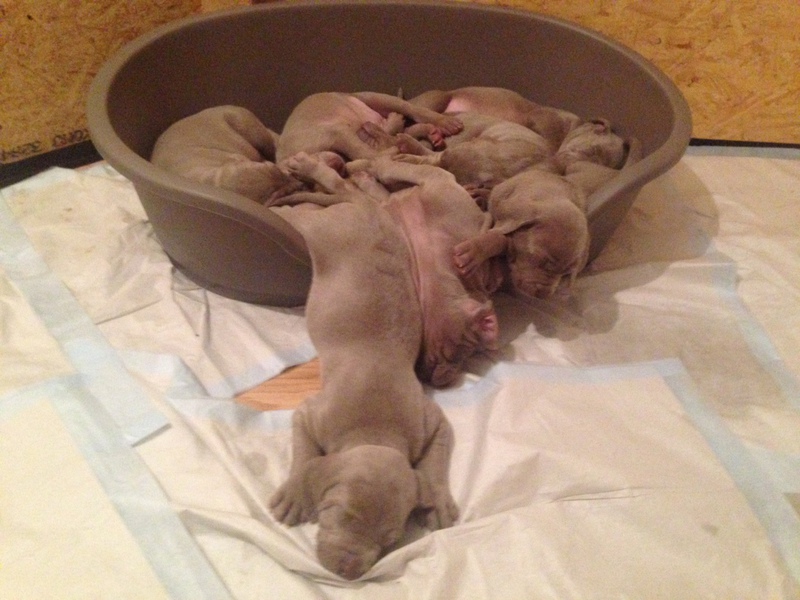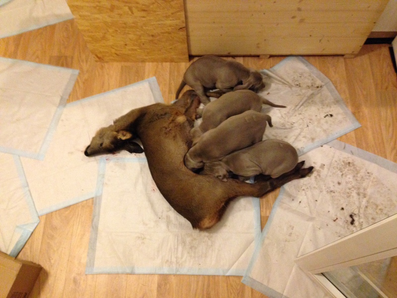 17.12.14 Fettere Welpen hat die Welt noch nicht gesehen. 5 Rüden, 3 Hündinnen. 530 g - 660 g. 3 Tage eher hätte wohl auch gereicht...
