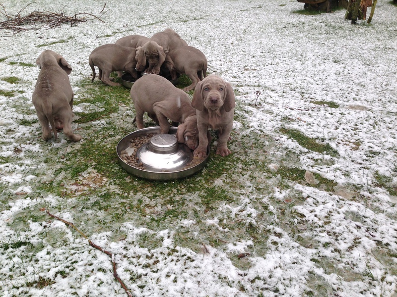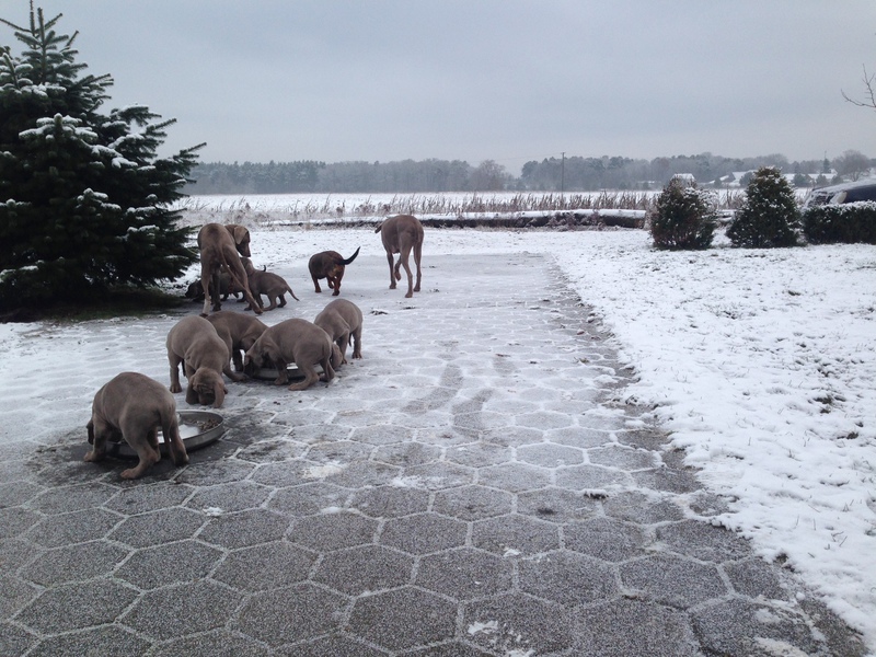 23.01. Die Welpen erkunden den Garten, fressen und fressen. Aska ist wieder fit. Jetzt beginnt die wilde Zeit.