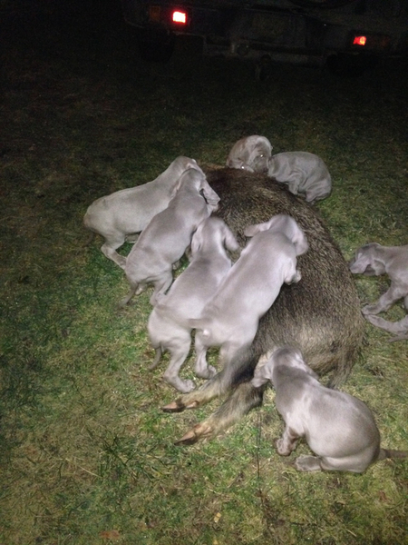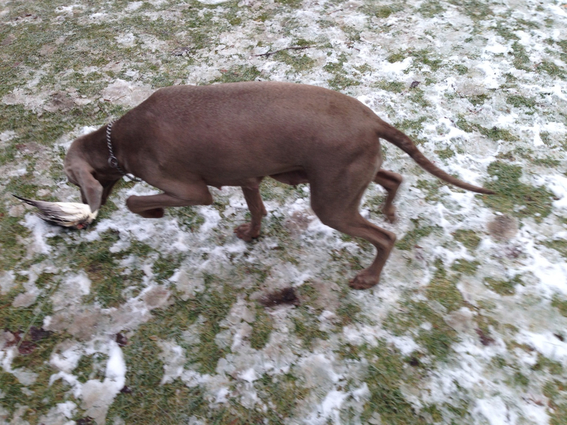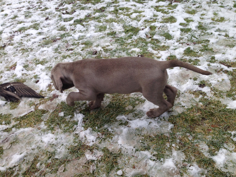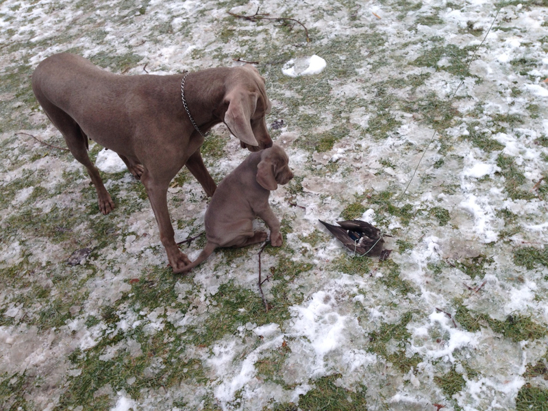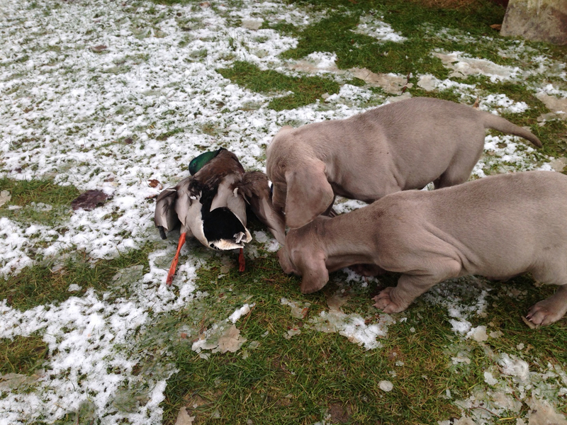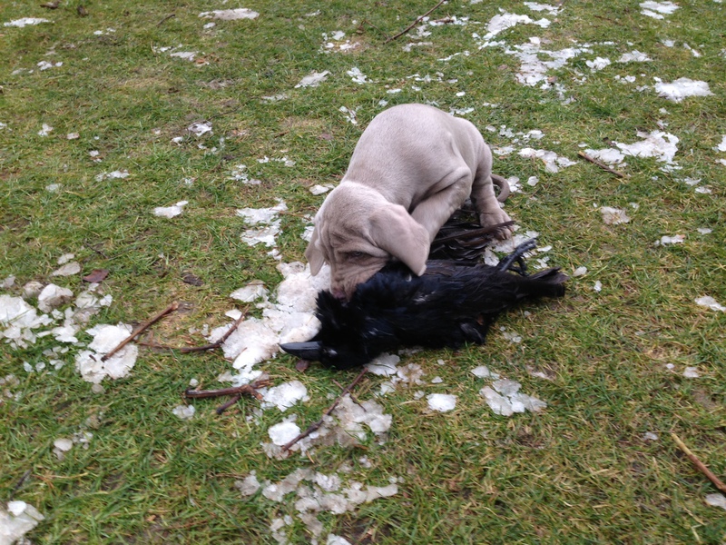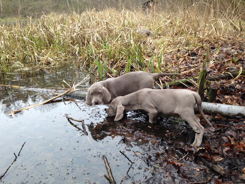 01.02. Die Kleinen dürfen sich am Wild austoben, schnorcheln hinter geschleppten Stücken her und zeigen erstes Vorstehen.
