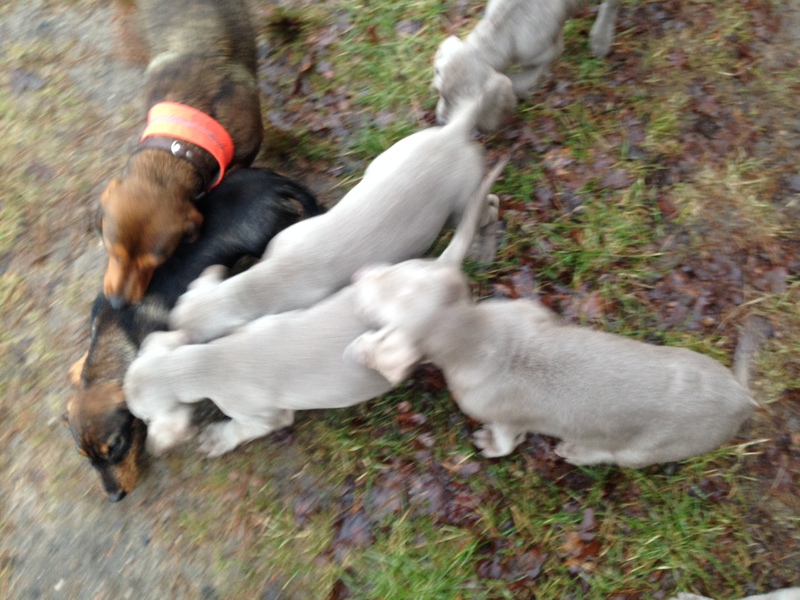 29.01. Keine Angst vor gar nix... Die Welpen probieren sich aus und lernen Wild und die Welt vor dem Gartentürchen kennen. Nächte Woche sind wir im Revier unterwegs.