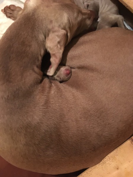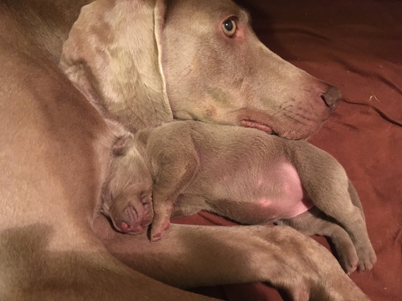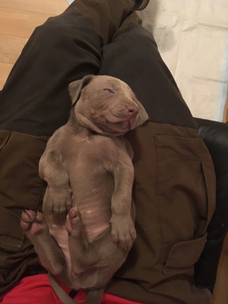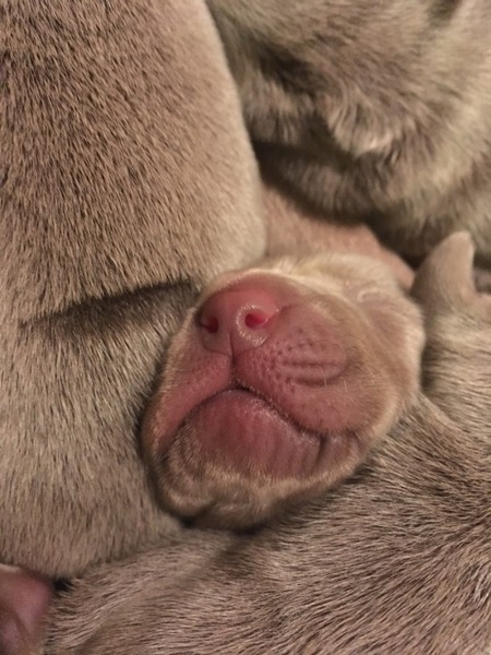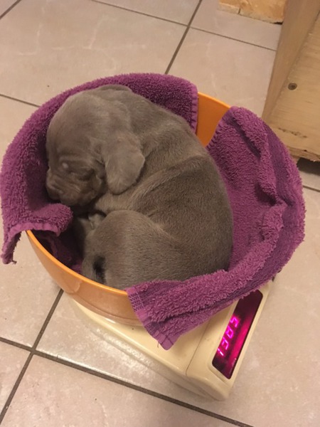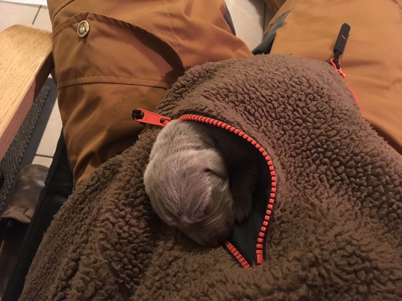 16.12.17 Entweder säugt Aska oder sie frisst. Viel Freizeit bleibt nicht. 2-Strich Mädchen ist die Zarteste, 3-Strich Junge kratzt schon am Kilo.