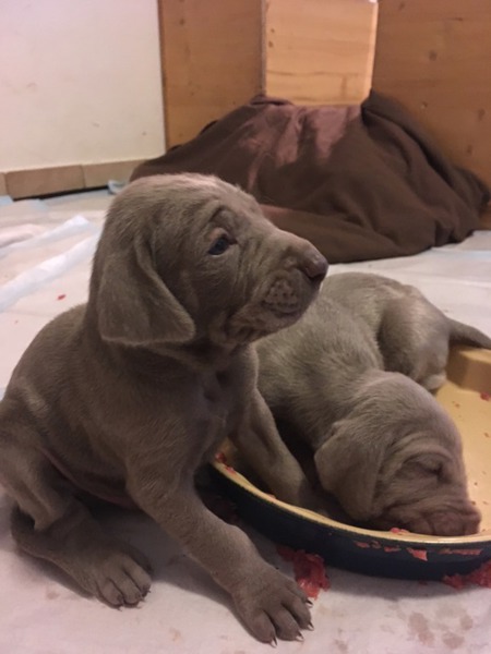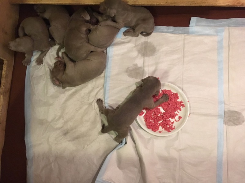 03.01.2018 Die Welpen verschlingen Rinderhack, Nudeln und Trockenfutter. Aska säugt sie regelmäßig und sie bedienen sich zusätzlich am Wassernapf. Die meiste Zeit wird vollgefressen gepennt.