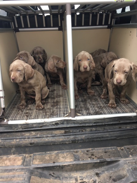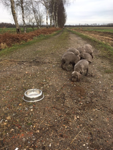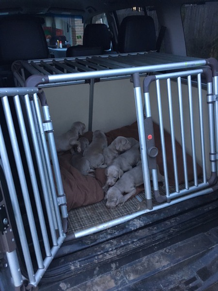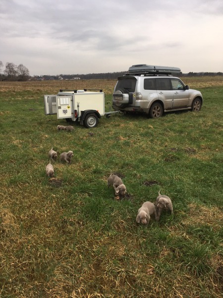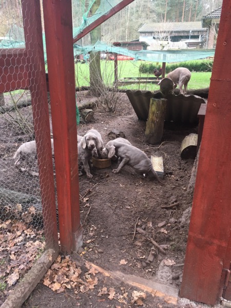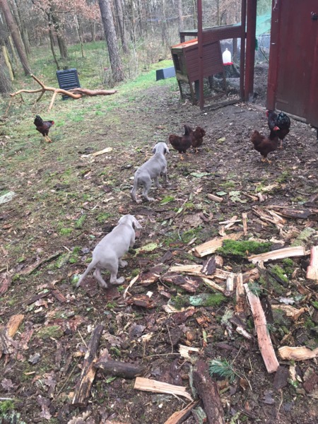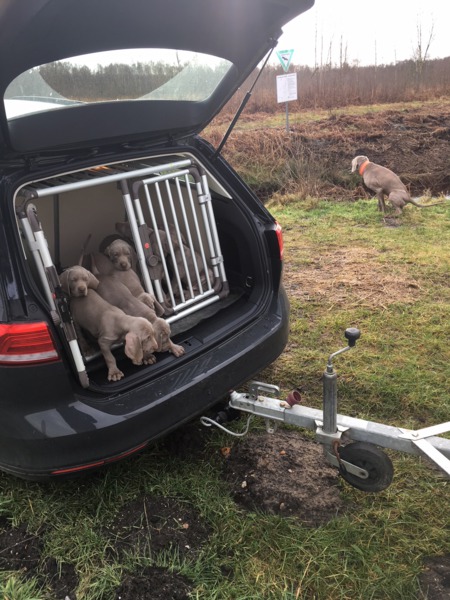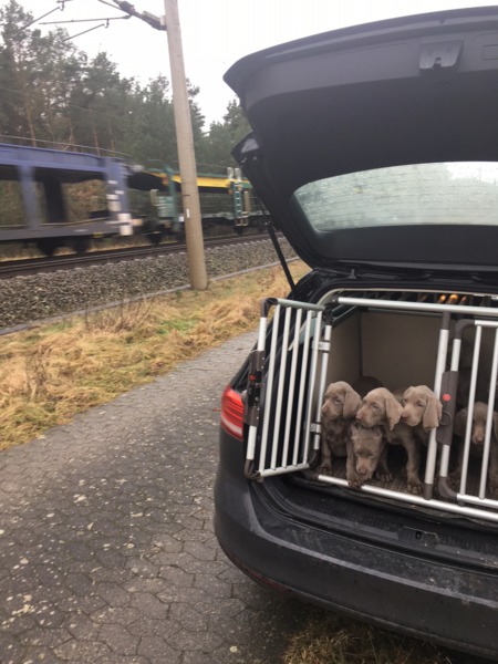 15.01.2018 Die Terrassentür steht ständig auf und wir heizen für die Spatzen. Die Welpen gehen selbstständig in den Garten und lösen sich. Naja, oft... Wir erkunden jetzt die Reviere. Die Großen kommen in den Anhänger, die Kleinen passen noch alle in die Autobox.