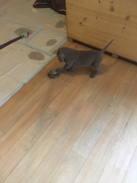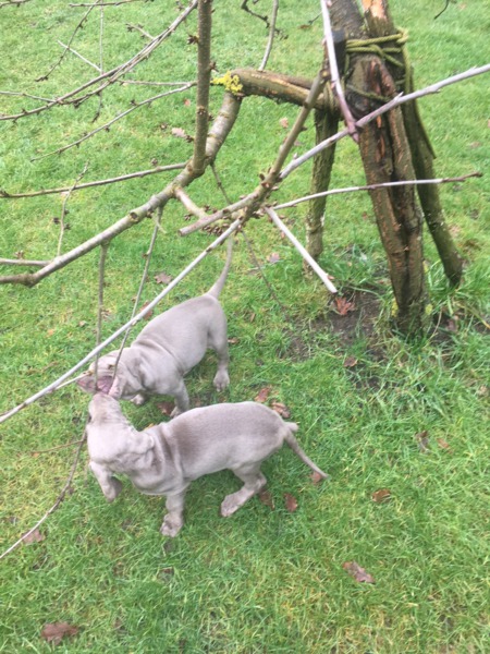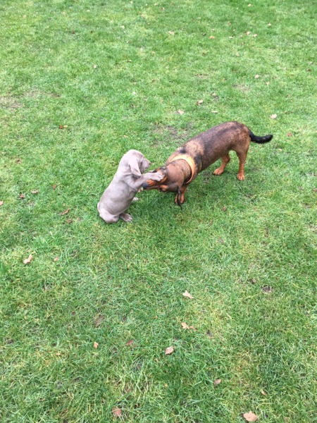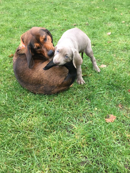 22.01.2018 Die Zeiten in denen die Hundchen nur pennen und stoffwechseln sind vorbei. Gefühlte Hauptbeschäftigungen sind nun Zerstörung und Kampf. Also ab in den Garten...